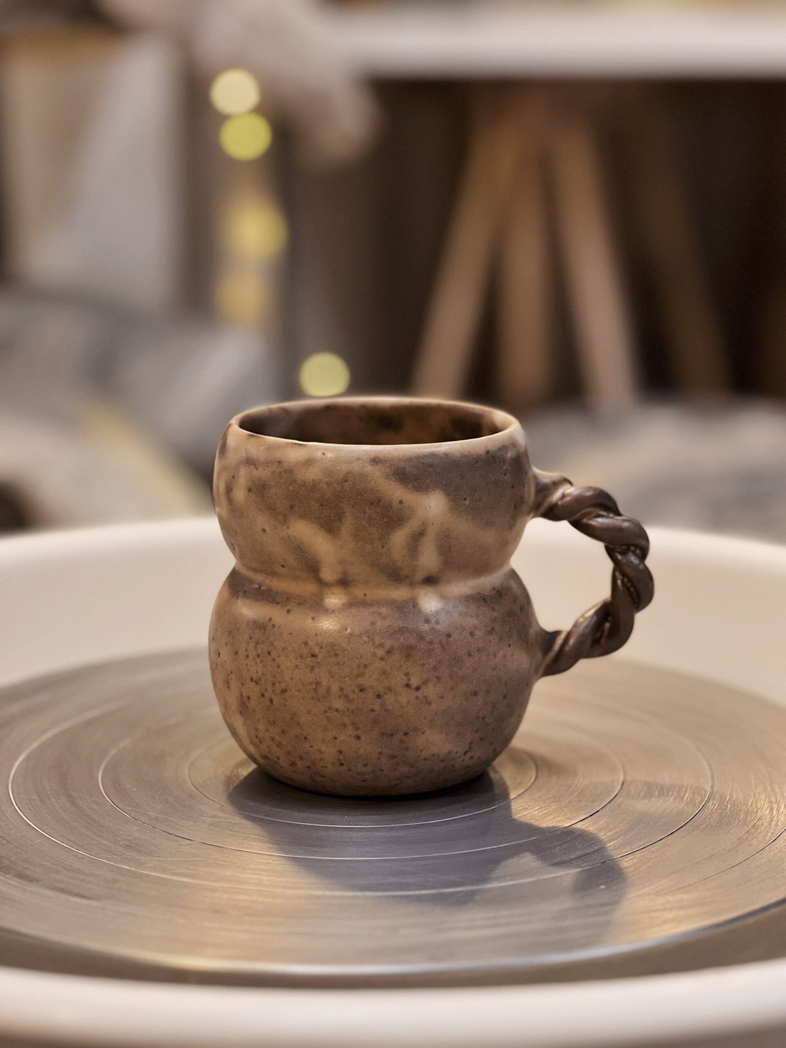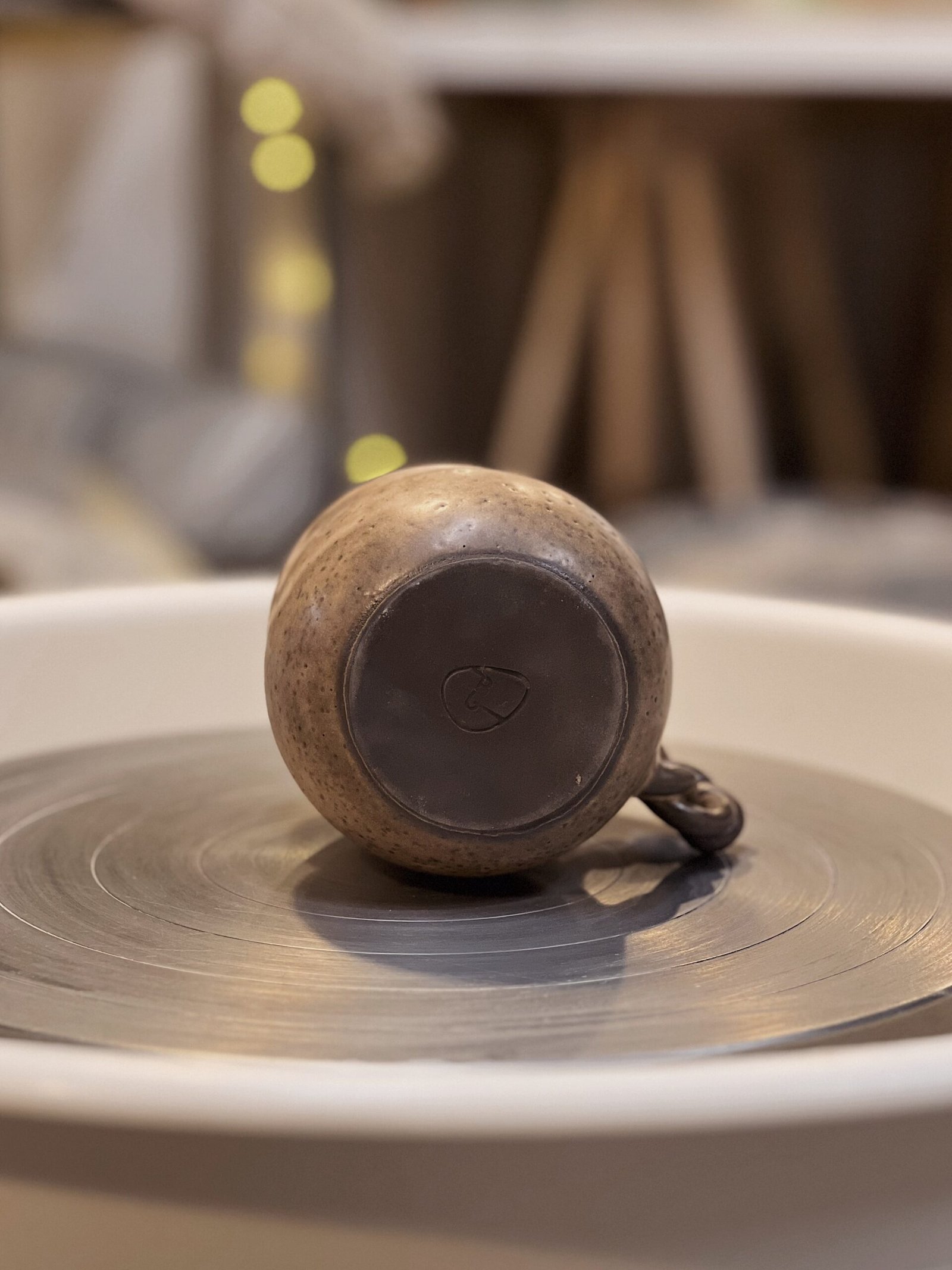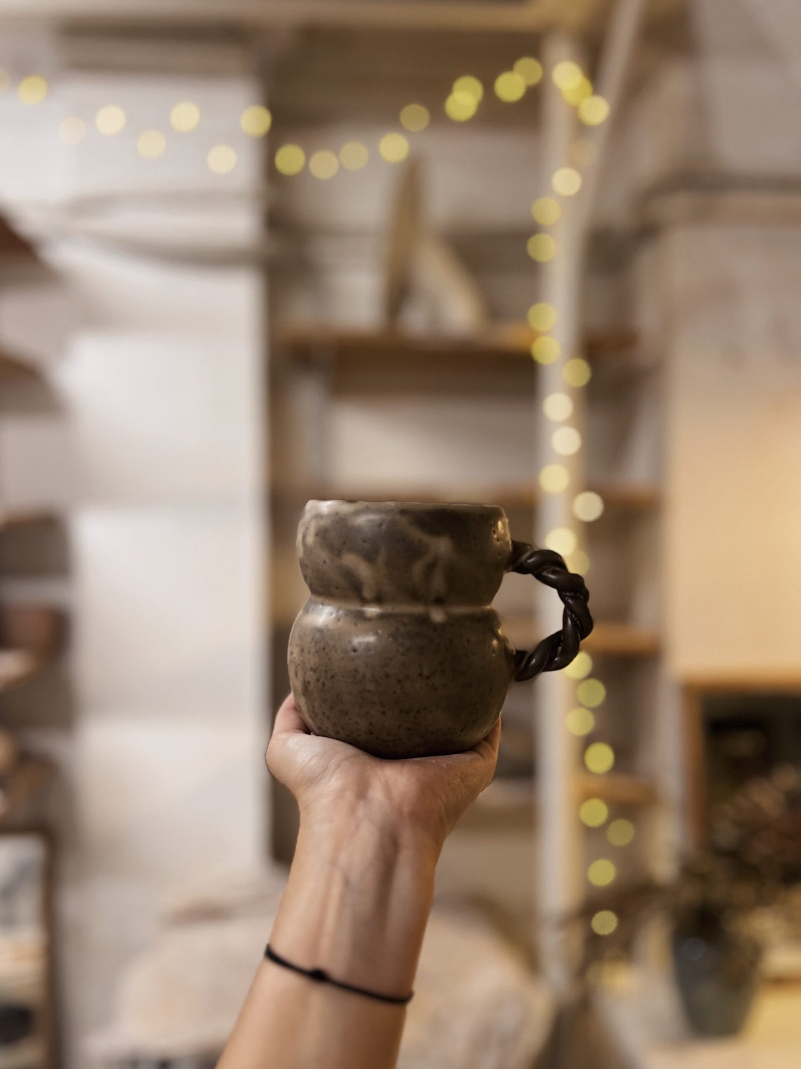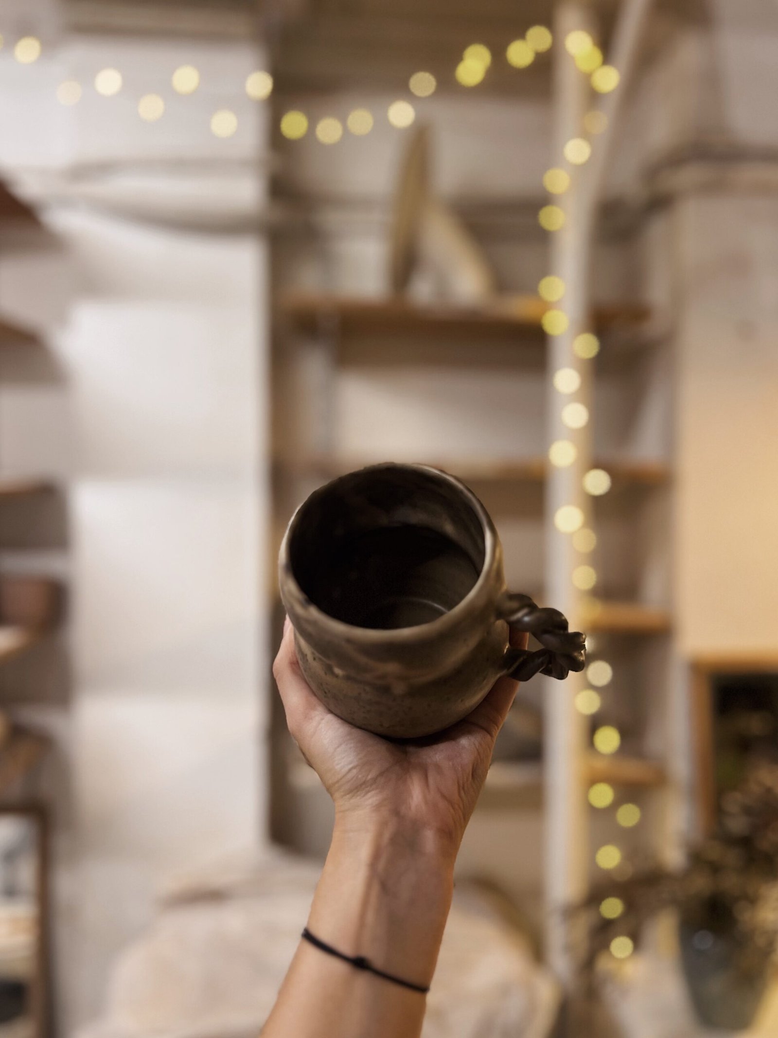 Esta taza está hecha con gres negro de alta temperatura en torno alfarero y esmaltada en color blanco mate.